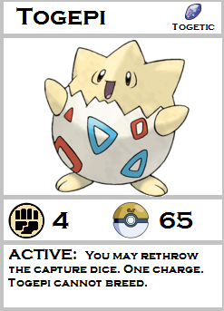 Rules and Tricks: Use this ability to capture desirable Pokémon more often. Togepi cannot breed.
