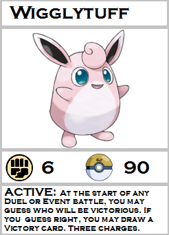 Ability (Active): At the start of any Duel or Event battle, you may guess who will be victorious. If you guess right, you may draw a Victory card.